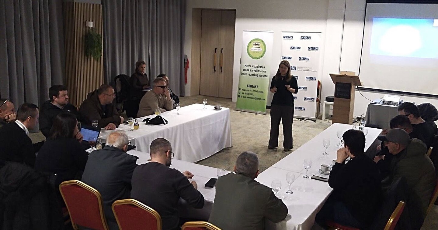 Dana 31.03.2026. godine u hotelu Hotel Emporium u Bihaću održan je trening na temu „Medijska pismenost za unapređenje vidljivosti i prava osoba sa invaliditetom“, koji je organizovala Misija OSCE-a u Bosni i Hercegovini za predstavnike Mreže organizacija osoba sa invaliditetom Unsko-sanskog kantona.