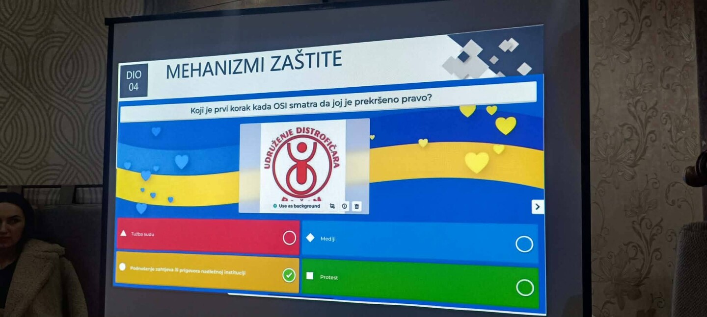 Poseban fokus stavljen je na praktični rad, kroz grupne diskusije u kojima su učesnici analizirali primjere kršenja prava OSI u lokalnoj zajednici, tražili uzroke problema i predlagali konkretna rješenja. Predstavljeni su i mehanizmi zaštite prava, uključujući institucije, postupke pritužbi i važnu ulogu organizacija osoba s invaliditetom u zagovaranju i unapređenju položaja OSI.