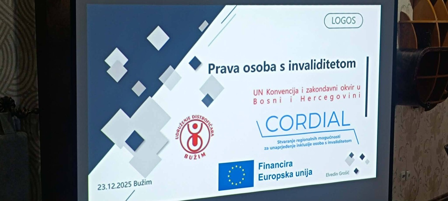 Udruženje distrofičara Bužim je 23. decembra 2025. godine u Hotelu Urban uspješno realizovalo radionicu na temu „Prava osoba s invaliditetom – UN Konvencija i zakonodavni okvir u BiH“.